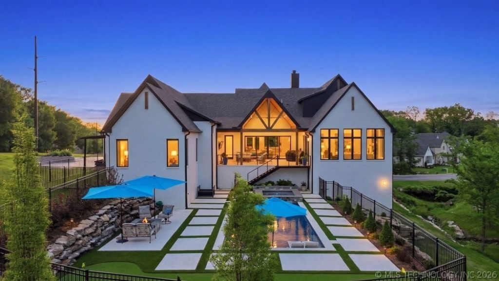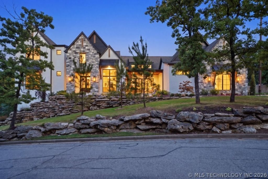 COMING SOON, NO SHOWINGS OR OFFERS UNTIL 4/24/26. Luxury living in Hidden Oaks Estates in the award-winning Jenks School District. This custom-built 2023 home sits on a private .80-acre lot in a gated community and offers over-the-top upgrades designed for both entertaining and everyday living. Inside, you'll find a stunning open-concept layout with a 20-ft vaulted great room, wood beams, fireplace, and seamless flow into a chef's kitchen featuring double oversized islands, professional-grade appliances, double ovens, farmhouse sink, and a separate scullery/pantry with additional refrigerator. The home offers 5 bedrooms, 6 bathrooms, including a private primary suite wing with its own HVAC, spa-style bath, soaking tub, dual shower, and custom closets. A second living/game room includes a wet bar, wine cooler, ice machine, and reinforced flooring for a pool table. Designed for modern living, this home includes automated window shades, smart systems, EV-ready oversized 3-car garage, tankless water heater, spray foam insulation, whole-home generator, and full wheelchair accessibility. Step outside to a true resort-style backyard featuring a custom gunite pool and spa, waterfall, tanning ledge, firepit, putting green, and low-maintenance turf. Covered patio with vaulted ceiling, outdoor TV, and built-in grill connection creates seamless indoor-outdoor living. Additional highlights include a dedicated office with patio access, dog run with electric pet door, designer lighting, custom cabinetry, and a private setting with a creek running through the property. If you're searching for a luxury home in Jenks over $1M with pool, gated neighborhood, and high-end finishes, this is the one.